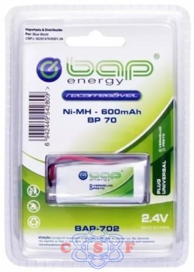 Bateria Telefone BAP 2,4V X 600mah BP70 Marca: BAP Código de barras: 6942449542809