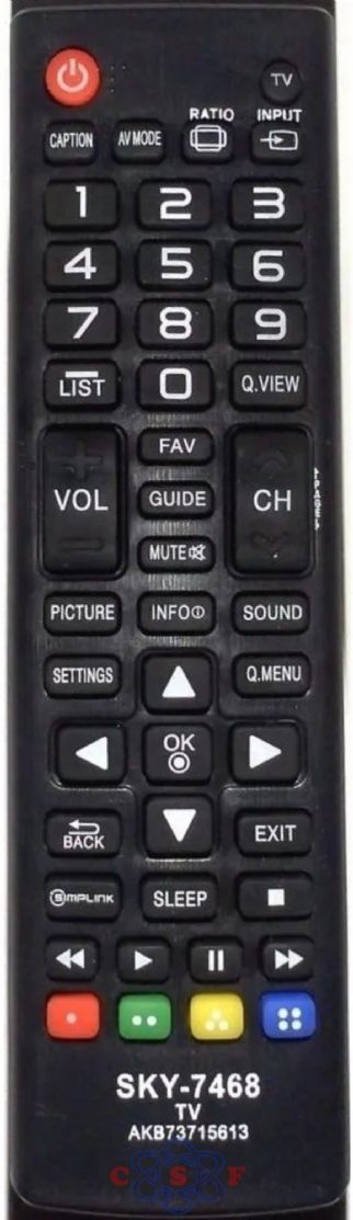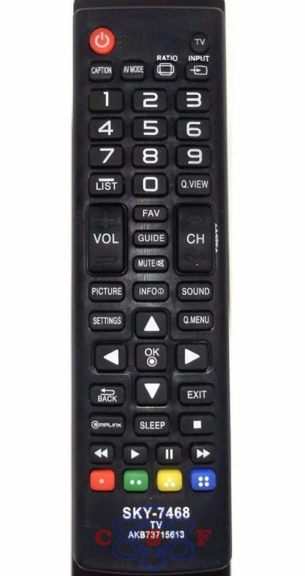 Controle remoto LG Led e Lcd LE 7468 Sky 7468 Modelos compatíveis : AKB73715613 / 32LN540B / 32LN536B / 32LN5400 / 39LN5400 / 42LN5400 / 47LN5400 / 50LN5400 / 55LN5400. |