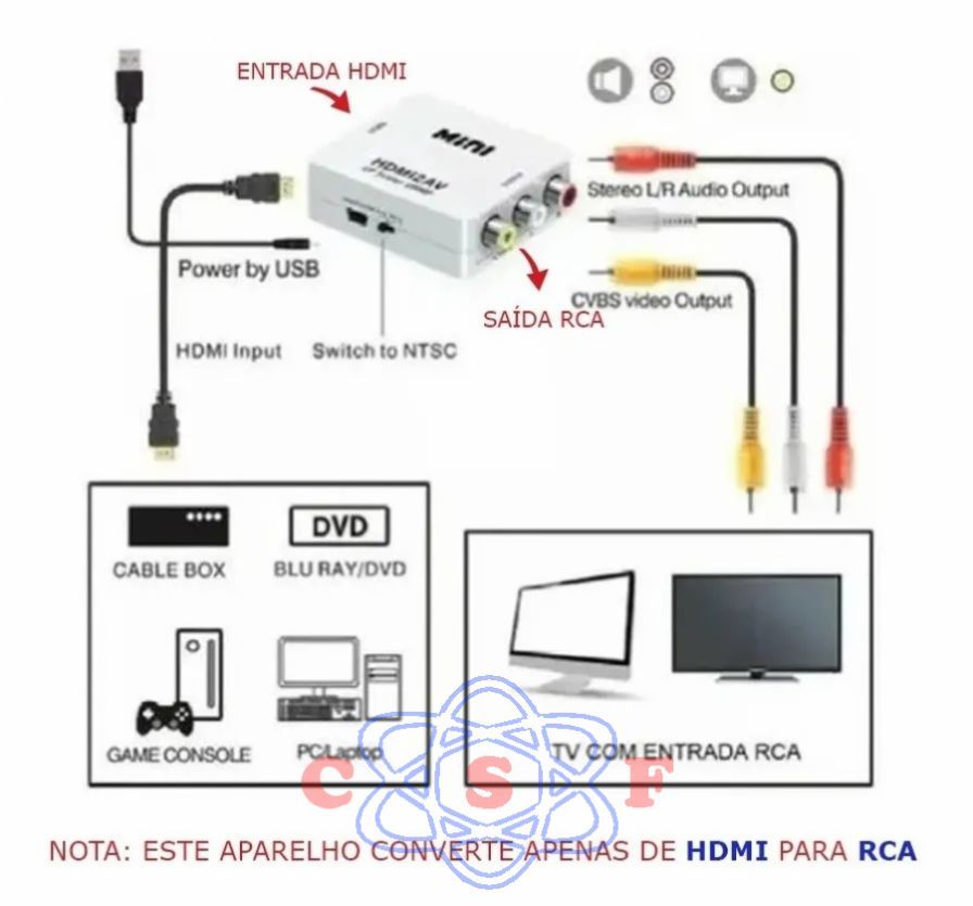 Converter Conversor HDMI para AV/RCA Audio e Video |