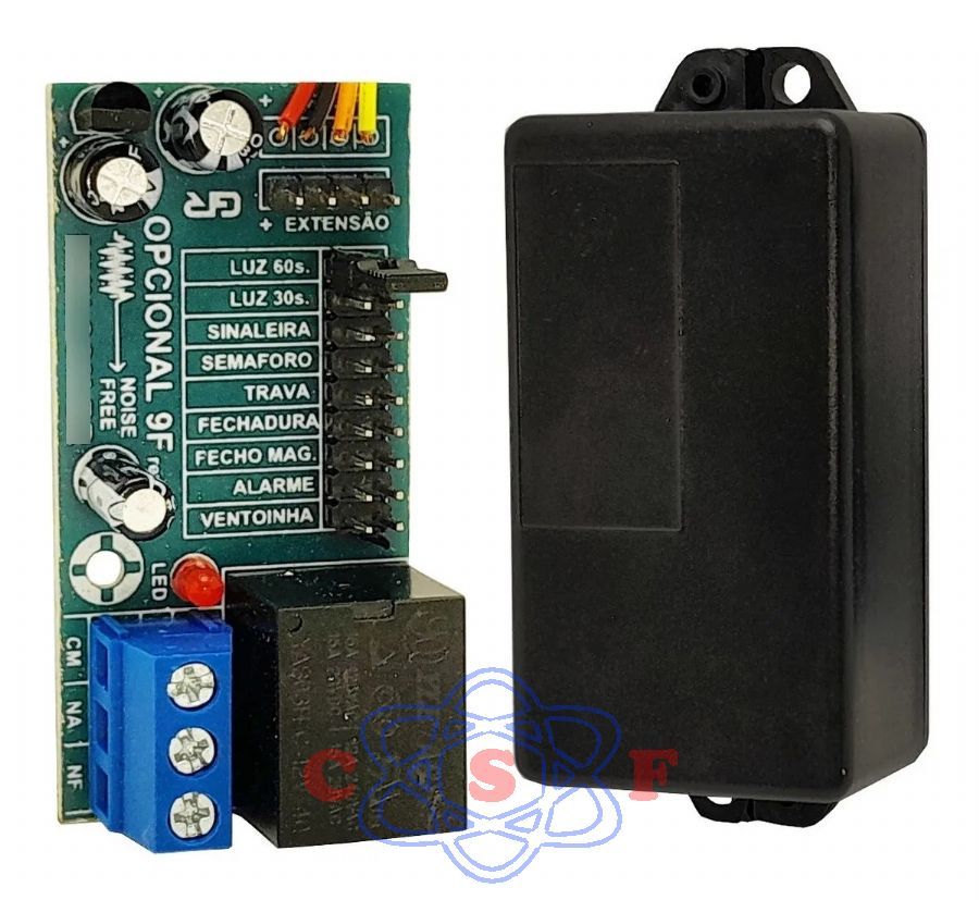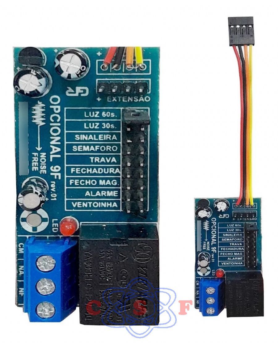 Módulo opcional acoplador 9 funções, utilizado para acionamento de trava, luz de garagem e outras funções em placa eletrônica MKN que tenha o conector 8F, tambem compativel com Garen G2, G3, Combat e Acton que tenha o conector 8F.